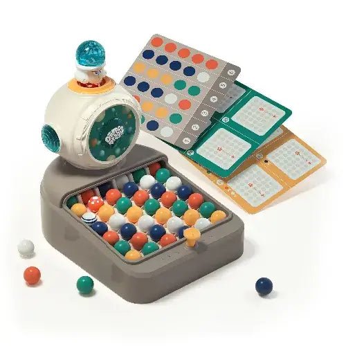 • Develops pattern recognition and strategic thinking skills. Designed for single-player puzzle solving, players must arrange the marbles according to the patterns shown on the included cards.
